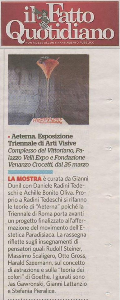 L'opera "Il Gazometro e la Ballerina" é stata esposta alla Triennale di Arti Visive di Roma (25 marzo - 22 aprile 2017) Palazzo Velli Expo, piazza S. Egidio 10 (Trastevere)